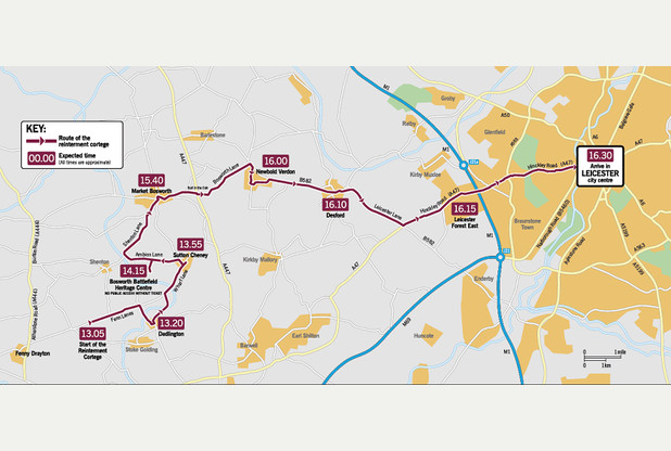 There is more at http://www.itv.com/news/central/2015-02-23/leicester-richard-iii-route-road-closures-leicester-cathedral-events/