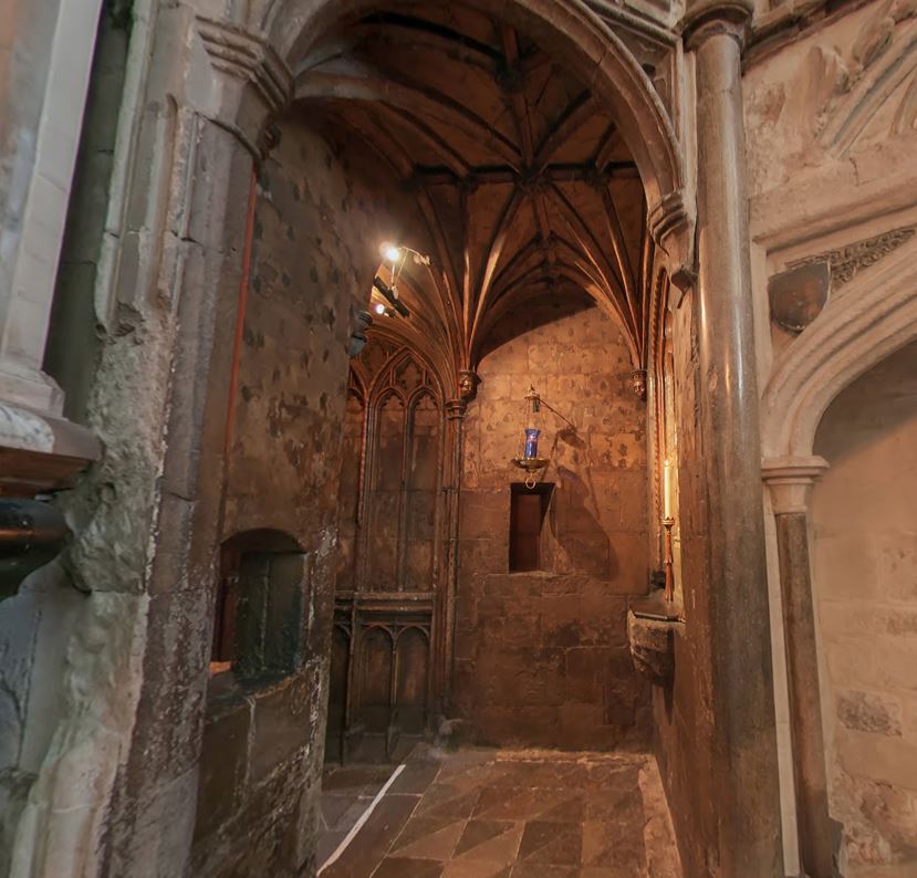There was at one time no access from the Chapel of Our Lady of the Pew into the Baptist’s chapel, but the two were probably joined by an aperture through the party wall to afford Richard II a view of the services held in the Baptist’s chapel. It must have been almost claustrophobic for him, but also how very private. He used it for his own personal devotions, and although it has been altered since his day, it somehow retains a sense of him.