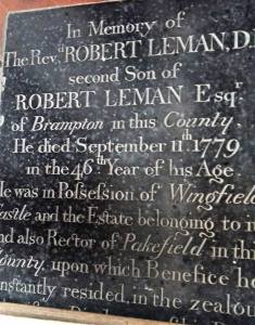 Additionally, a tomb to Robert Leman DD (right) lies beneath the flagstones. This Georgian cleric may well be related to Sir John of Beccles, particularly as he seems to have enjoyed the living of Pakefield, which is also by the A12, further east.