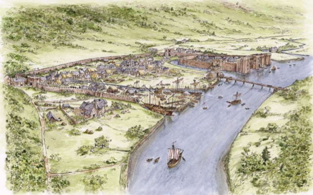 Conjectural view of medieval Newport, by Anne Leaver, 2007