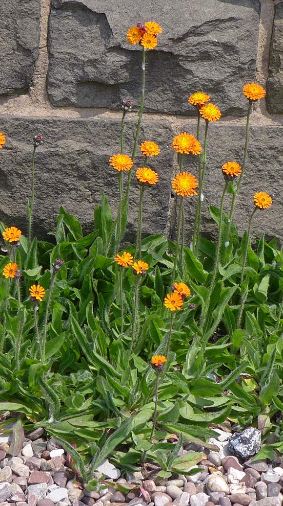 Appropriately enough, this plant is called Orange Hawkweed, Pilosella aurantiaca, and it came from the European Alps. It then became a garden escape that is naturalised in the UK, but is still rare, even though it was introduced in the 17th century. One of its common names here is ‘fox and cubs’, apparently because of the way the buds hide away beneath the open blooms, like a vixen shielding her young. This name may, of course, apply to other varieties of hawkweed, but I came upon it when looking for the Orange Hawkweed specifically. It is also called Tawny Hawkweed, Devil’s Paintbrush, Grim-the-Collier (‘because the black hairs are reminiscent of a miner covered in colliery grime’), and Orange Hawkbit. So it’s been around enough to have acquired a handful of names. Oh, and fame has it that hawkweeds acquired their general name because ‘it is alleged that hawks eat these wildflowers and that this is the reason for their superb eyesight’.