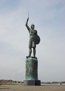 Following an unsuccesful Viking raid in 924, the battle of Maldon took place in August 991 and the result was a victory for the Norse invaders. Byrthnoth, the Essex earldorman who led the Saxons that day, was among those killed and Ethelred II instituted payment of the “Danegeld” to pacify the Vikings. This Byrthnoth statue (left), consequently, is displayed and a tapestry marking the millennium is part of the Maeldune Centre, to which we shall return.