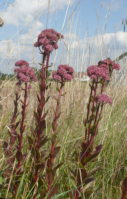 Apparently the tradition at Midsummer was to take two slips of orpine/sedum plant and put them close together in a chink in the roof joists. They were kept moist and called Midsummer Men, representing a lover and his sweetheart. The way the slips grew toward or away from each other told if the lovers would know happiness or not. Woe betide them if the slips died!