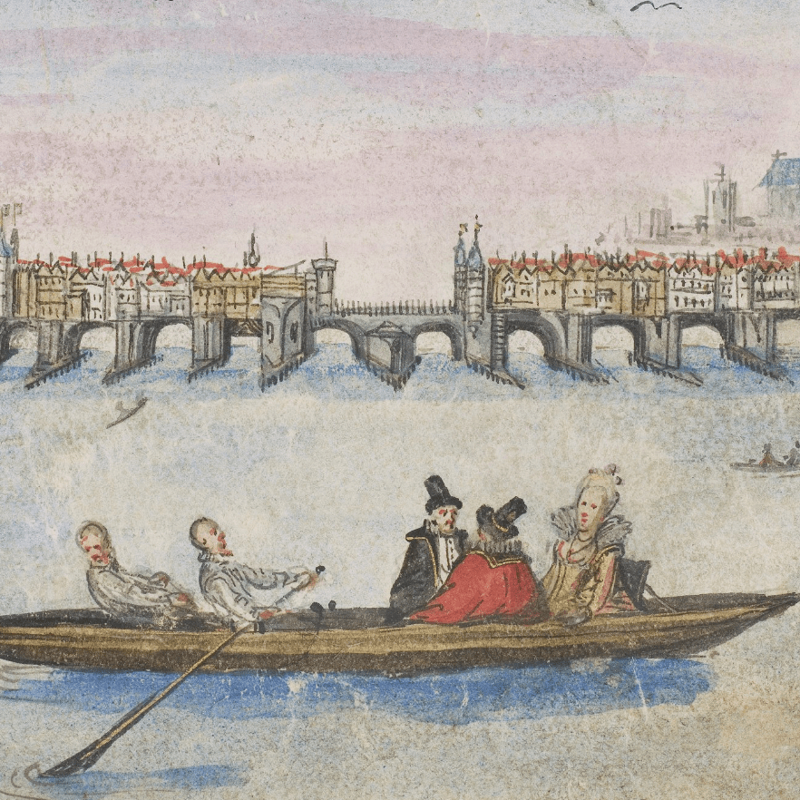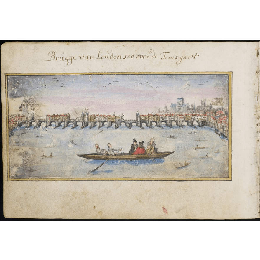 Below is another of van Meer’s works from the same album, this time of a ferry crossing in front of London Bridge, this time taken from this collection.