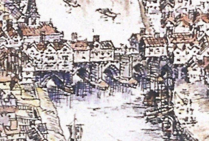 So Catton had a ford too! This means that if Holand’s camp was on the Catton village side of the river, he could simply have ridden across the ford and then on toward the Ouse. Or maybe his encampment was already in the meadows to the west. Whatever, we can discount the Derwent as being a hurdle. All he had to do was cross it on horseback, ride like the wind the six miles or so over the flat land to the Ouse. Now, to cross the Ouse by a bridge, he’d have to go to the old stone bridge in York, then south on to the road to Bustardthorpe and Bishopthorpe.