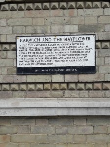 been during the previous century – they were no longer significantly persecu.ted, although many were financially marginalised. Within thirty years, the next generation of Puritans were to rule Britain with James’ son executed and his grandson displaced, but the Leiden Communion of refugees that left Delftshaven on the Speedwell under Captain Reynolds four hundred years ago today were as unhappy with their place in society as were Christopher Jones’ crew on the Mayflower. Jones appears to have been a Harwich man of about fifty, as this Harwich Society plaque implies (right), although Coggeshall also claims him, having been master and part-owner of the Mayflower for eleven years. The dissenter William Bradford, author of the History of Plymouth Plantation, was one of his passengers