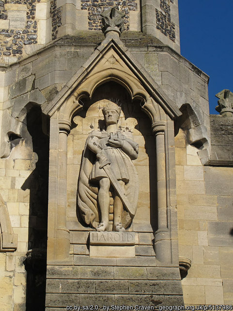 After the Battle of Hastings, Harold’s mutilated body was said to have been identified by his first wife, Edith Swannesha, through marks known only to her, but his final resting place is unknown.