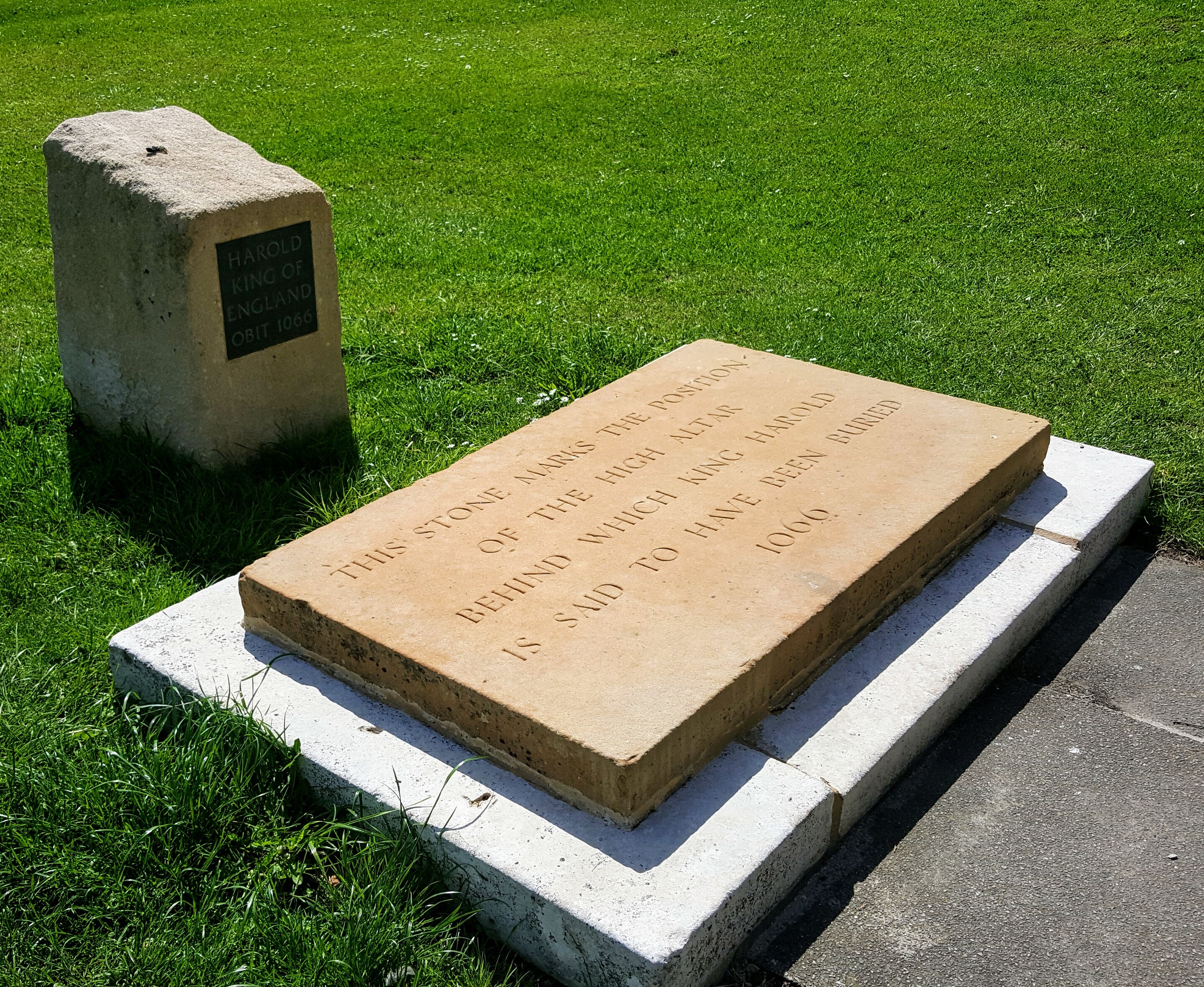 The traditionally accepted location is Waltham Abbey, but this is disputed. Another candidate is Bosham, because of Harold’s strong association with it as his birthplace, and the discovery in 1954 of an Anglo-Saxon coffin in the church there. Also, it is near the sea and William was said to have wanted him buried near the Channel for his impudence in opposing him.