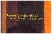 The major change was the addition of the controversial figure in the doorway, who was omitted from the sketch. There are several interesting and compelling anomalies that revolve around this figure. The first thing to consider is the writing above his head that identifies the man, which is more cryptic than at first appears. It reads ‘Johanes heresius Thomae Mori famul: Anno 27“. ‘Johanes heresius‘ is usually assumed to refer to John Harris, yet if ‘heresius‘ is intended to equate to ‘Harris’ then it is the only surname in the painting that is not designated by a capital letter. The word ‘famul‘ has been assumed to be an abbreviation of famulus, meaning secretary, but these two words have possible other meanings.