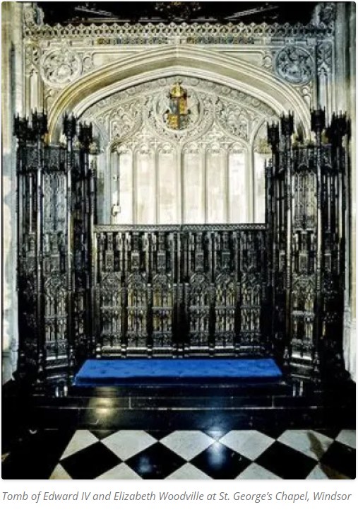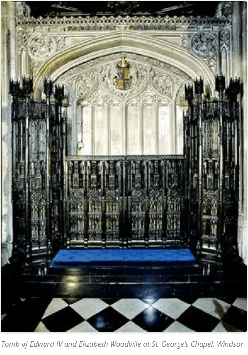 During the reign of Edward IV, thanks to his queen’s endeavours on her relatives’ behalf, their rise to prominence led to unrest and jealousy. She wanted hers to be the greatest family in the realm after the king himself, and Edward IV was foolish enough to indulge her. Or to encourage her because he saw the rise of the Woodvilles as a satisfying antidote to the strength of the great barons. Whatever his reasoning, or lack of it, his marriage to Elizabeth led to rebellion by his foremost magnate, the brief return of the House of Lancaster, Elizabeth and her children fleeing into sanctuary twice, and the treachery of his own brother, George, Duke of Clarence, whom he eventually executed for treason. Fratricide.