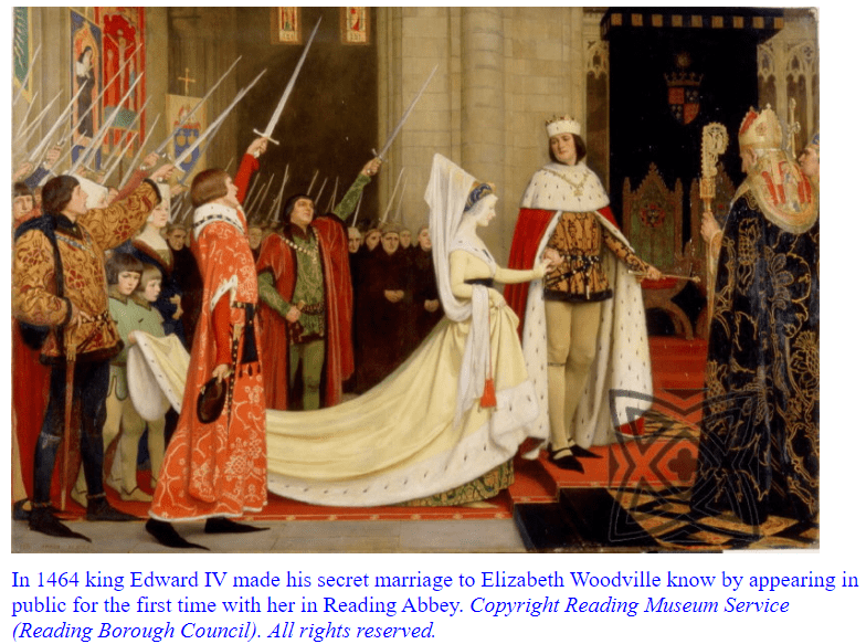 I don’t deny there seems to have been a romance with Edward, although whether she waylaid him as a pathetic widow with two boys to look after and no money with which to do it, is another matter. I just don’t know. It’s a good story, as they say. But she certainly seems to have refused to give in to him unless he married her. Maybe he also married her simply to bring the great Earl of Warwick down a peg or three. Edward was quite capable of both things, that’s for sure. He was 22 at the time, the king, and bursting with hormones! But he didn’t always make wise moves, and if by marrying Elizabeth he simply wanted to stick his immature tongue out at Warwick, he ended up with more trouble than he bargained for.