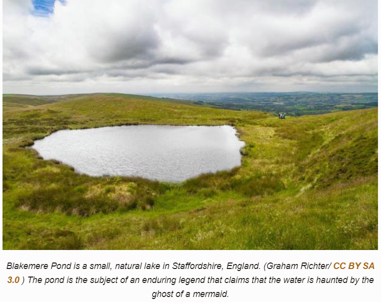 Lady Eleanor Talbot’s family was long connected with ‘bottomless’ Blakemere/Blackmere/Black Mere, near Whitchurch in Staffordshire. Their manor house was on the shore of the mere, and was where Lady Eleanor may have been born. I once had reason to research Blakemere, but my prying did not turn up the legend of the Blakemere mermaid.