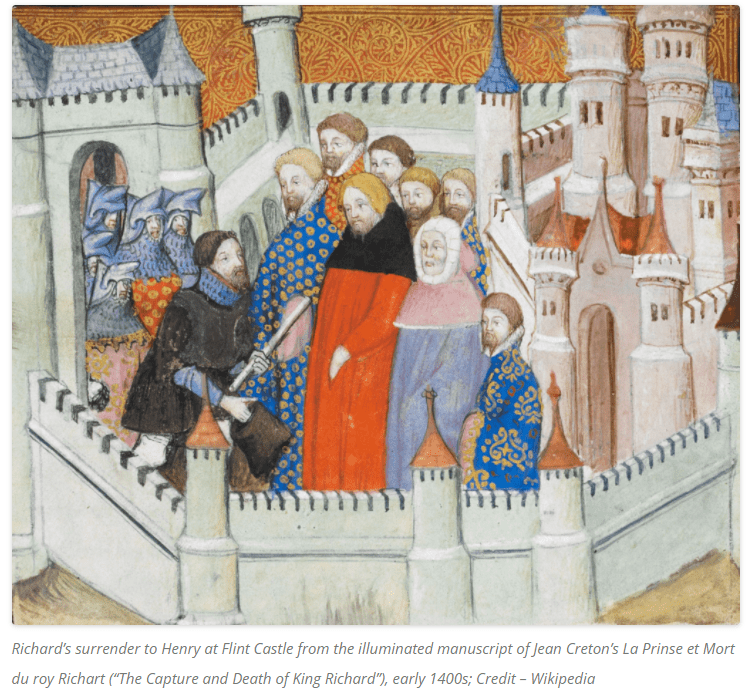 Apparently on Tuesday, 30th September 1399, once the unfortunate Richard was in Henry’s clutches, the Archbishop of Canterbury read a proclamation to the lords and commons in Westminster Hall stating that Richard gave up his throne willingly, because he knew he was so very unworthy of wearing the crown.
