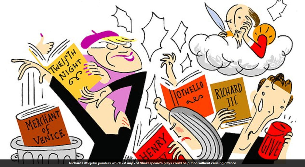Well, let’s be honest, there are precious few Shakespeare’s works that won’t offend someone. Everything of his that I endured at school offended me simply because I couldn’t stand him! I wanted Chaucer. OK, there’s no accounting for it, and some grey cells are definitely from a different planet. Mine are clearly from some planet as yet undiscovered, because I still think Chaucer’s better.