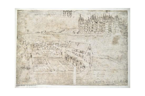 Is it a coincidence that the “terrace” of windows on the right of the 1805 illustration immediately above this paragraph could well be in place of the terrace of windows in the earlier 1562 illustration at the top of this article? Was the older building merely tidied up and improved? I don’t know, but in the original drawing the walled approach (on the far left) to the palace passes beneath a gateway, then turns sharply right to pass beneath what looks like a main gatehouse access to the great hall. Might the crenellated buildings immediately against the end of the terrace in the 1805 picture be where the original main entrance was?