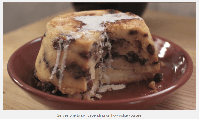 “….four quarts of milk, a pound of flour, a pound of golden syrup, eight eggs, two ounces of butter, two nutmegs and mixed spice to taste. The flour, eggs, syrup and spice were first beaten in a pan. Next the milk was boiled and stirred into the ingredients to make a paste, and then the butter was dotted in small pieces on the top. At the last moment three-quarters of a pint of cold water was poured, without stirring, into the middle. The whole thing was baked in an earthenware vessel in a hot oven for an hour, and then gently for a further seven or eight hours. When cool, the mixture became a kind of jelly. It was popular at Pucklechurch and also at Doynton, where it lingered until the late 1950s….”