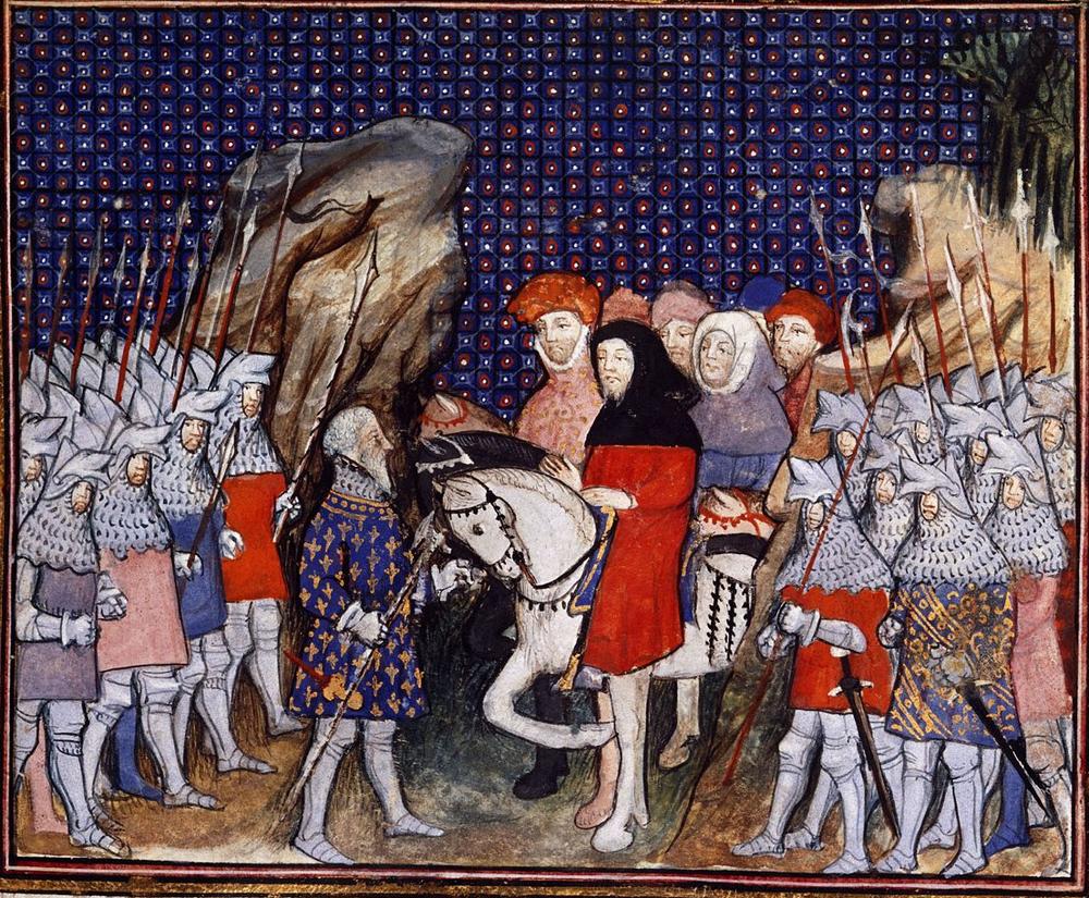 Richard seems to have gone from mistake to mistake after this. He returned to Wales (Milford Haven), left his army and then dashed north with only a few close supporters. Why, for Pete’s sake? This blunder led to the denouemont described in the above article. At Penmaenhead he was ambushed and then deceived by the duplicitous Earl of Northumberland, who’d been sent by Bolingbroke and swore all manner of chivalrous treatment. Whether he was fooled or not, today—16th August—in 1399 Richard surrendered, was captured and demeaned, and “escorted” to Flint Castle.