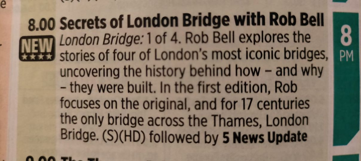 This series finally resumed on Channel Five at the beginning of October, to cover two of the newer structures over the Thames, neither of which are in the original form. As usual, Rob Bell’s enthusiasm is infectious and his programmes are highly informative.