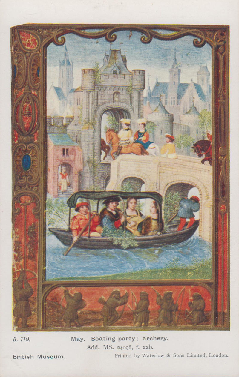 There must have been a brisk trade in illustrations of boating parties in the Merry Month of May…and Flemish painter Simon Bening (circa 1483-1561) stepped up to the mark!
