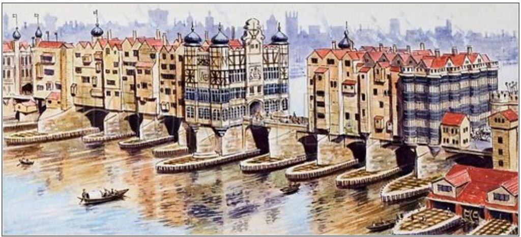 Among London’s other defences were wooden piles driven into the Thames, to force vessels to pass one by one, and everyone who had quays along the riverside had to construct pallisades wooden brattices. The latter were covered structures that protected the wharves, quays, steps and so on from enemy landings, and also from arrows on any vessels that did get through. All aldermen had to list every able-bodied householder who could handle a weapon