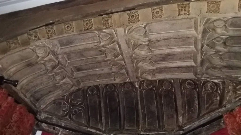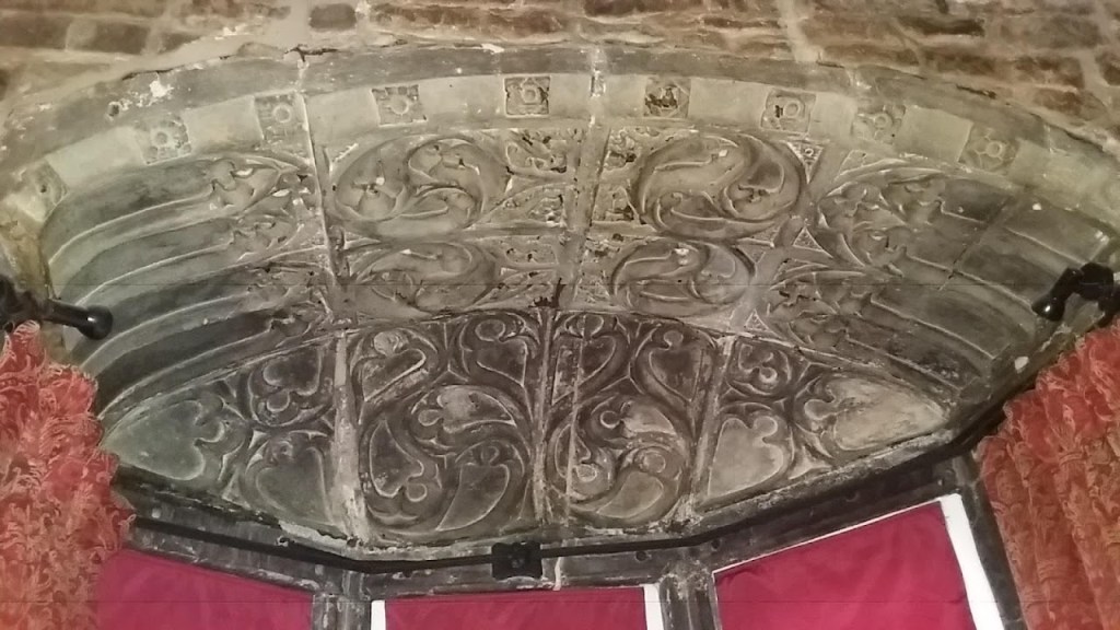 The King’s Chamber is used as the breakfast room today, which was great–as that meant it was open to explore! The window embrasures still held much elaborately carved medieval work and there was an original fireplace and a tiny narrow staircase leading where? It was very evocative, even with a Christmas tree in the middle window, and it was easy to imagine Richard seated within, definitely not in the best of moods after Buckingham’s betrayal!