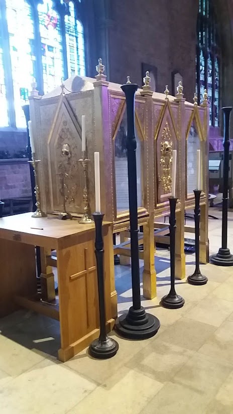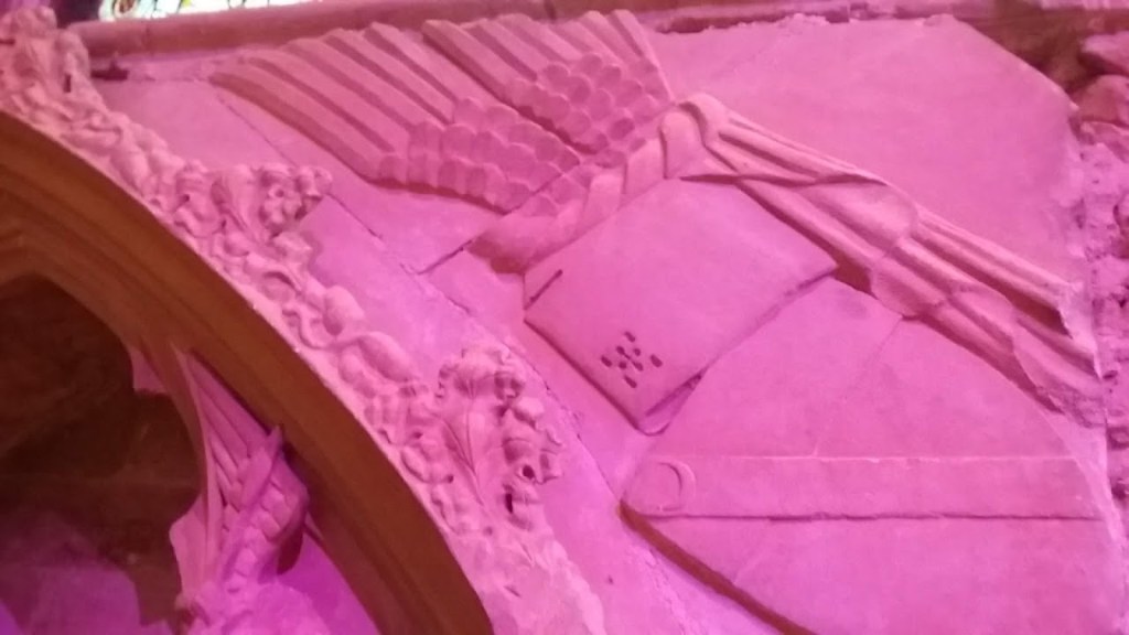 A nice little pre-Christmas break took me to two towns of interest, Buckingham and Grantham. I wanted to see Buckingham museum which is currently hosting a Richard III display featuring the gold Half Angel found in the fields nearby. It was a nice little collection and the info panels were mercifully free of too many biases. The museum, though small, had some other interesting artefacts, and the town itself sports some interesting buildings, including a medieval chantry chapel with a fine Norman door and a very tall-spired church bearing the Swan of Buckingham, a badge that was also used by the Stafford Dukes of Buckingham.