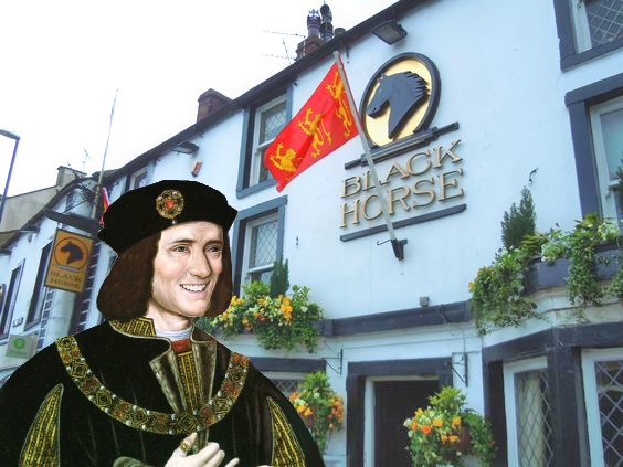 I don’t know Skipton, so when I read the above article I was struck to learn that the Black Horse hotel was “once owned by Richard III”! Really? Well, I had immediately visions of Richard as Mine Host, bidding all guests a warm, right royal welcome. Can you imagine it? Being welcomed at the door by the King of England, who will engage you in interesting small talk as he makes you feel utterly at home? I wonder if he serves Old Plantagenet Extra Smooth or House of York Splendour? Would we have to tug our forelocks or sink into respectful curtsies? Perhaps he’d be informal and assure us that such things aren’t necessary?