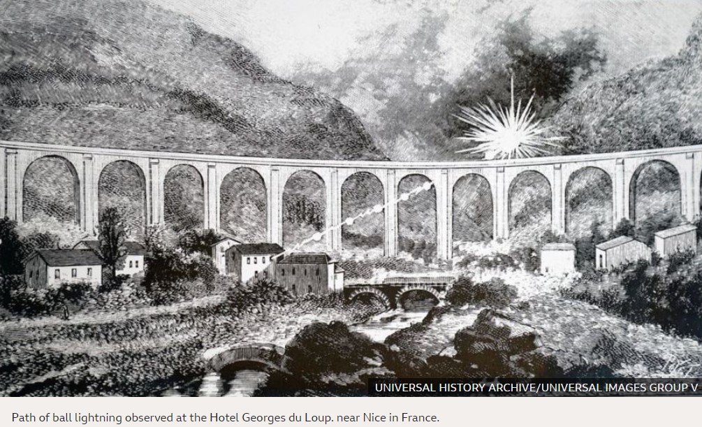 Unfortunately there don’t seem to be any known medieval representations of ball lightning—well, not that I’ve been able to find, so I can only show a photograph and 19th/20th-century illustrations.