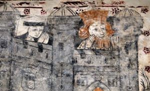 Jane Rutherford says “The image of St George appears to be the largest wall painting of this kind in Britain and apart from one other example seems to be the most complete. The representation of the Seven Deadly Sins is equally spectacular. The only comparable painting of Death and the Gallant survives in Newark”. Until the end of the fifteenth century there were no printed books and any books that existed were in Latin and French. So the paintings on church walls assisted parish priests to impress upon parishioners Bible stories and the lives of the saints and also the moral teachings of Christianity.