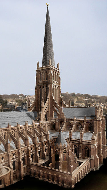 We all know what St Paul’s Cathedral looks like now – that enormous Wren dome looming over the City of London from Ludgate Hill. The above illustration is a reconstructon of the original St Paul’s. What a wonderful building! And how tragic that it was burned down in that cursed fire of 1666. There is now a project to recreate a virtual old St Paul’s.