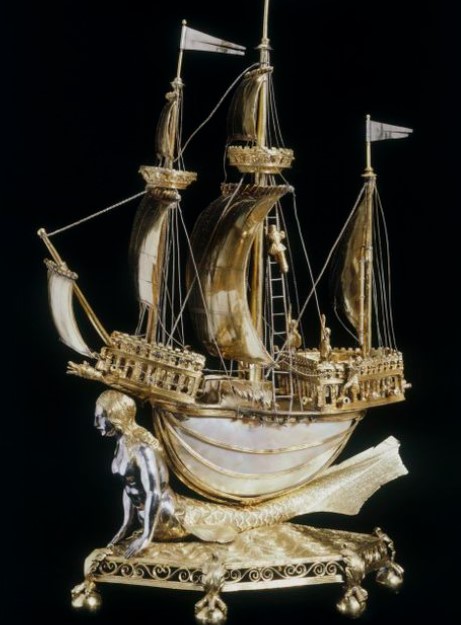 Among the gifts exchanged were gold, gems, gold pouches stuffed with more jewels, a horse with a silver saddle, four tablets encrusted with precious stones and depicting the Trinity, Christ and Saints George and Michael. Charles gave Richard a gold nef, a decorative ship used to collect alms at a feast. But also used as salt cellars! The splendid and costly item stood on a bear and had tigers, the badge of Charles VI, at the prow and stern. The tigers wore jewelled collars and were looking at themselves in mirrors. It had been a gift to Charles from his own uncle, the Duc de Berri, of Hours fame.