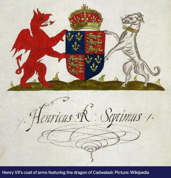 Eventually, at the second attempt, Henry managed to invade England with his army of French mercenaries. Now, he did this, so the article says, with the support of “the Woodvilles, in-laws of his late father-in-law to-be”. His late father-in-law-to-be? Um…brain cells clunking…oh, Edward IV! Anyway, the Welsh were gulled into supporting him because he was a descendant of Cadwaladr. Eh? Let’s face it, he wasn’t a Tudor at all, he had a Beaufort mother and if Edmund Tudor had in reality been a Beaufort to. (Born of an affair between Henry V’s queen, Katherine of Valois, and Edmund Beaufort, 2nd Duke of Somerset.) So Cadwaladr’s DNA would show up very thinly indeed , if it showed up at all. Wales believed this illustrious descent, however (and that Henry was descended from King Arthur!) and so was shafted, good and proper, because Henry’s bounty didn’t flow across the Severn but remained in England. In Henry’s pockets. I wonder the man could move with all that stolen loot weighing him down.