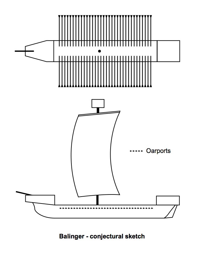 I’d thought a balinger was a smallish sea-going sailing vessel, so it came as a surprise to learn that they were oared as well: