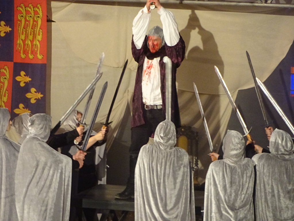 From there, however, the show takes a different direction, with Richard, speaking with a northern accent, shown to be a good lord, much loved in the north and loyal to his brother Edward. The Woodvilles are depicted as power-hungry schemers, as is the coldly determined Margaret Beaufort (amusingly, the actress playing her had a dual role as a town prostitute!) Buckingham appears in all his pompous glory, wearing a very telling golden shirt–he is (unintentionally) the funniest character, and I rather imagine not far off the mark in regards to the real Buckingham’s ambitions. It was nice to hear Eleanor Talbot‘s name mentioned when the pre-contract was brought up, too–although the characters did not seem to know who her father, late Earl of Shrewsbury was–as we know, he was a famous war hero (which makes it even less likely Richard would just randomly pick his daughter’s name from thin air). Catesby features, a rather villainous character (oddly), but there’s no Francis Lovell and Hastings/ Stanley are mentioned but never appear on stage. You can’t have everyone I suppose.