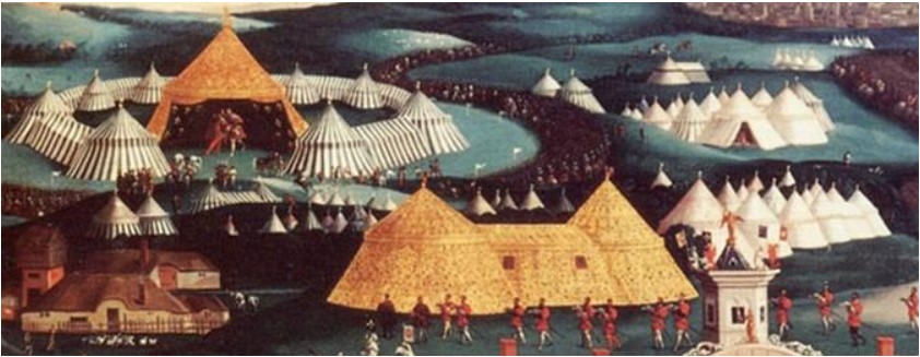 Now I’m more confused than ever. Tents like these must have been beyond gigantic! A capacity of 3,000? Avenues and streets? This can’t be right. Can it? Has something been misinterpreted along the way? As far as I can see, the way Mr Sumption has worded it, there’s only one interpretation: the tent was like a miniature walled town. Yes?