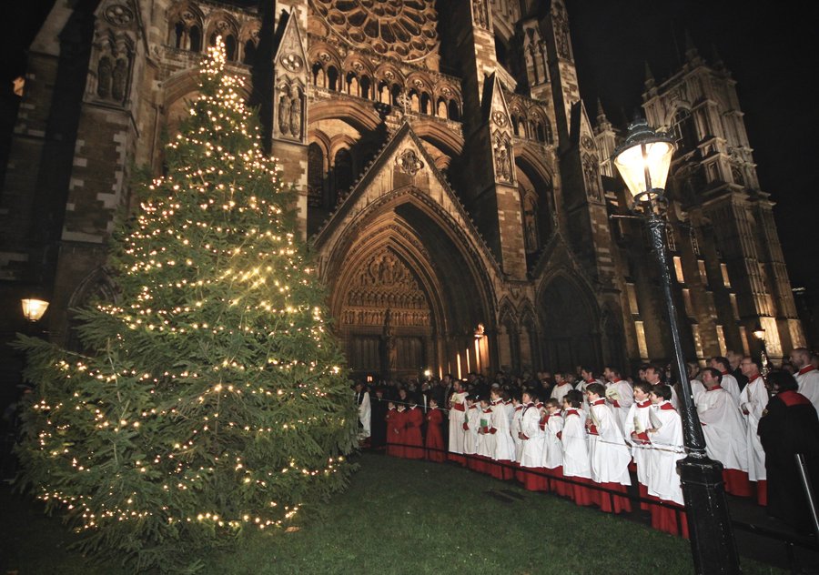 The first Advent carol service is imminent. It forms the first glimpse of Christmas, and the choir will wear red. The congregation will all have been provided with one of 650 special candles, each protected by a collar, to spare hands from wax splashes. The vestments must be at their best, with all repairs done, such as loose threads. The service commences outside with the big switching on of the Christmas Tree on the North Green. The choir is present, and one of the boys performs the actual switching on. The congregation watches on as all 1800 lights flare into glorious life.