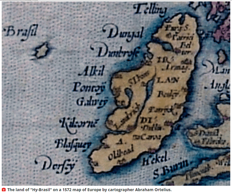 One of the above links refers to Atlantis, which is the most famous lost/sunken land of them all. It’s credited with being at Santorini in the Mediterranean, or somewhere in the Atlantic beyond the Straits of Gibraltar, perhaps in Antarctica and maybe another victim of the Bermuda Triangle. But it’s also claimed by some to be off the coast of Ireland! There it is known as Hi-Brasil, and you can read about the latter here.