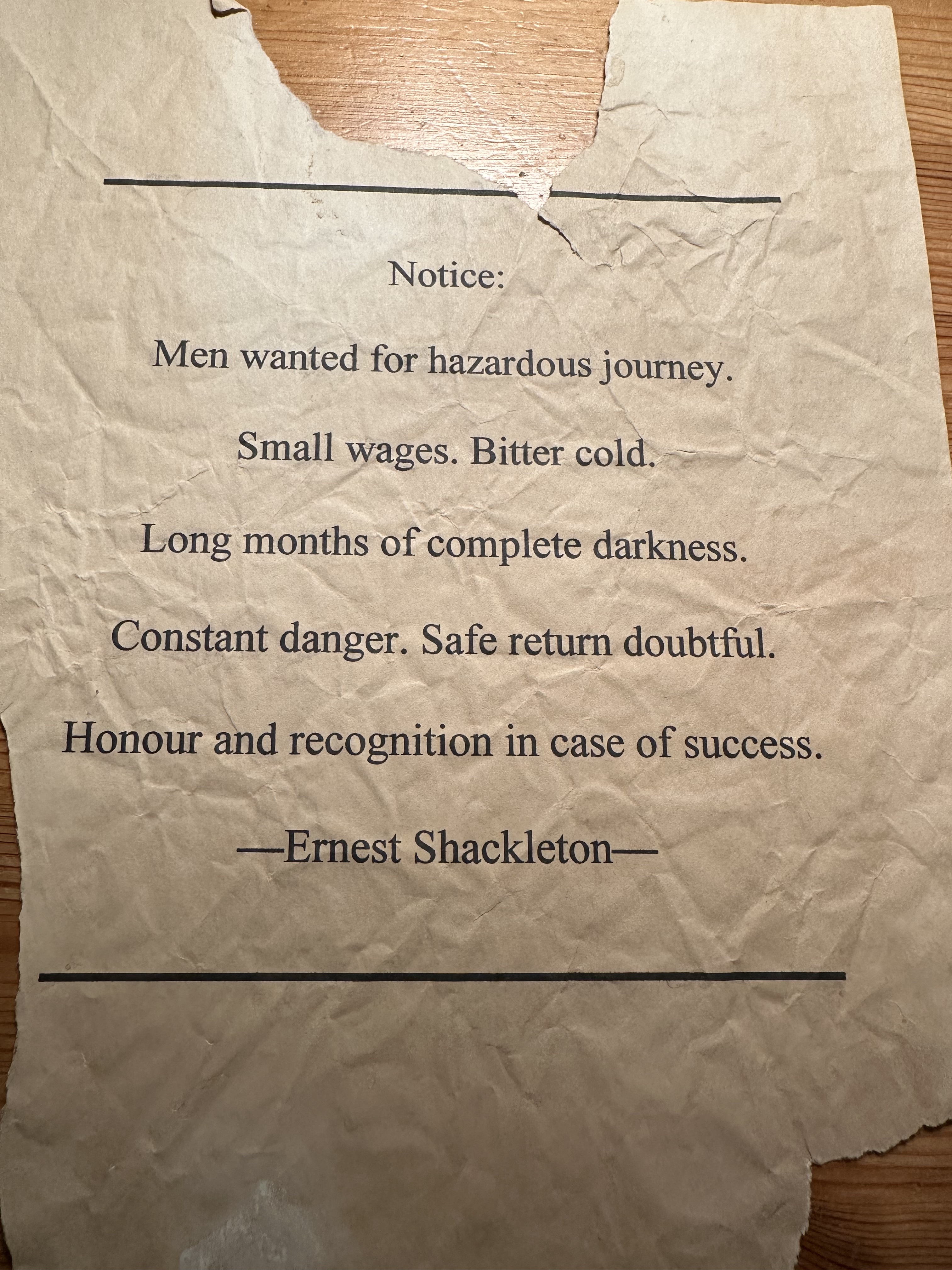 “For scientific discovery give me Scott; for speed and efficiency of travel give me Amundsen; but when disaster strikes and all hope is gone, get down on your knees and pray for Shackleton.”