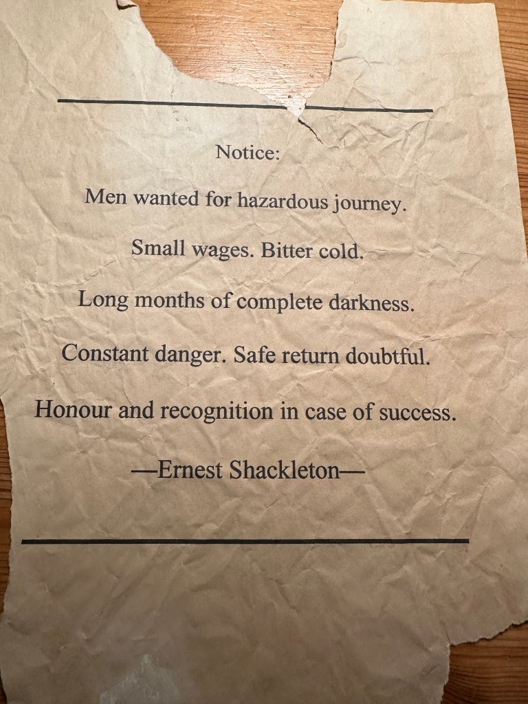 As we move toward 150 years following the birth of Sir Ernest Shackleton, some words from the man himself ~
