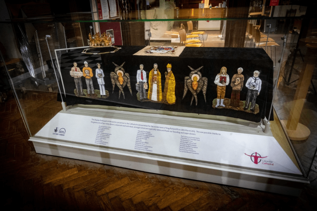 The story of how Richard III’s remains were discovered is a fascinating one, almost a fairy story, and happening upon a website that tells it properly is a bonus. If you go here you will arrive at the Seeing the Past website, which I thoroughly recommend. Credit is given where credit is due, i.e. with Philippa Langley and John Ashdown-Hill, and their hard work is illustrated very elegantly. Including explanations of the modern stained-glass windows at Leicester Cathedral, and of the pall for the coffin and altar.