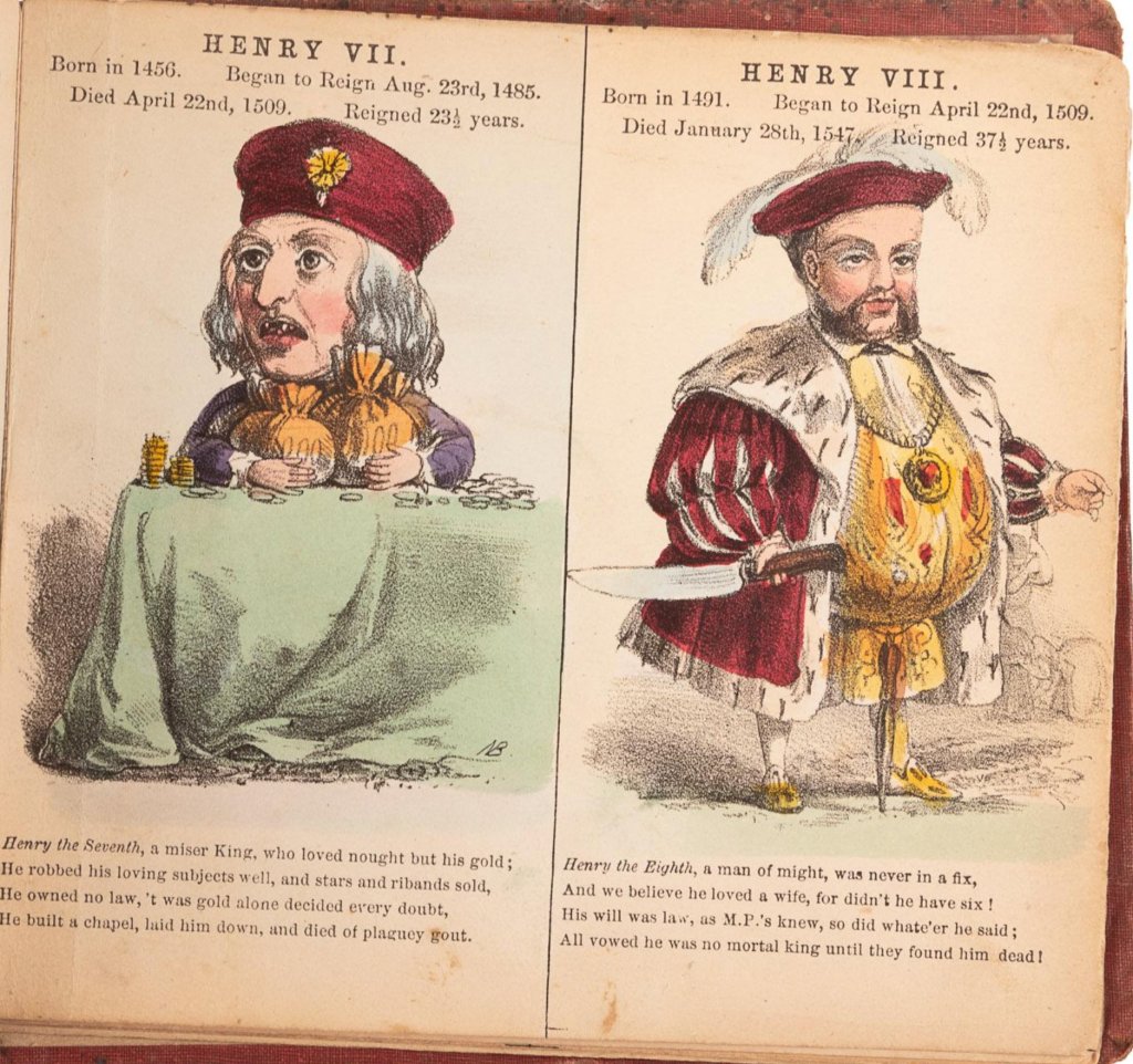 Wandering around Google Images, as you do, I can across these less than flattering but pretty darn funny vintage cartoons of Henry VII and his offspring Horrible Henry VIII.