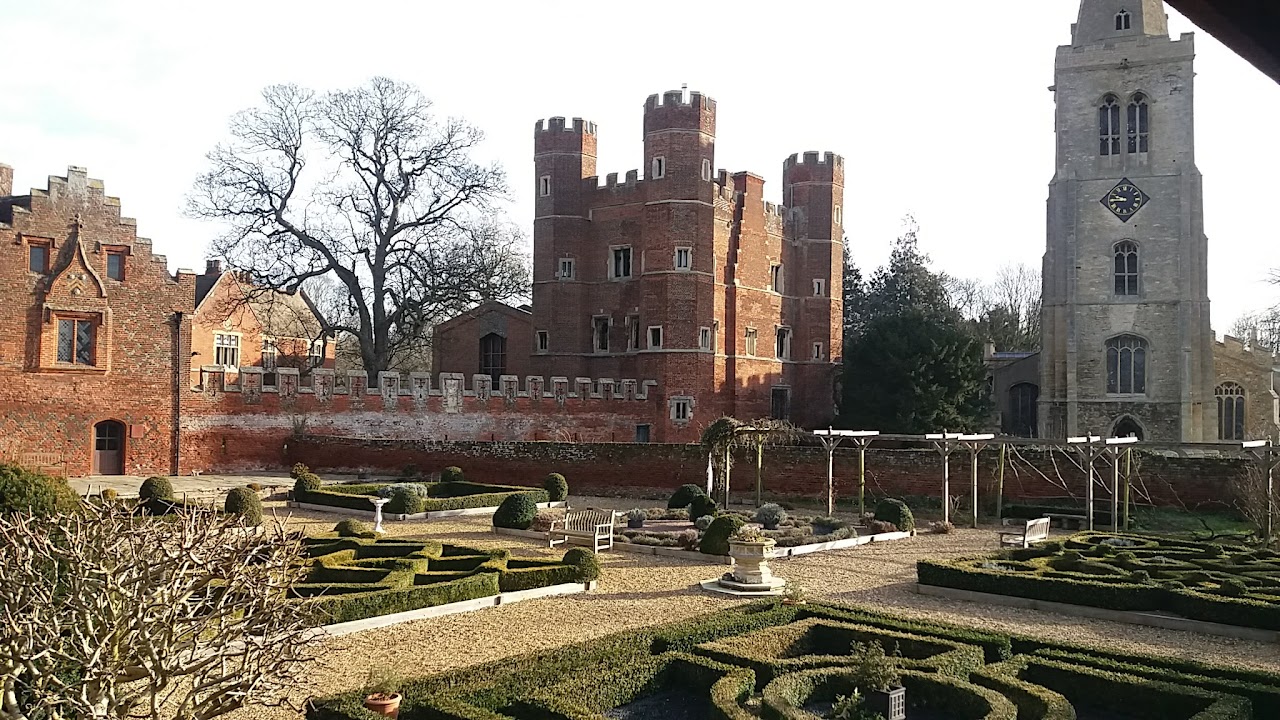 A few years back I wrote about Buckden Towers in Cambridgeshire, the old palace of the Bishops of Lincoln. Finally, with the pandemic receding, I was able to visit the site in its small village (once a thriving place in coaching times and earlier but much diminished with the advent of the railways.) Here Richard and Anne visited the palace, mostly likely in 1484, although 1483 is stated on most websites. The Bishop at the time was John Russell. The great red brick Tower which makes a striking landmark was built in 1472-5 by Thomas Rotherham, supplanting an earlier structure, and still looks much as it would have done in Richard’s day, though many outbuildings are lost. The moat is now gone but the courtyard retains a few medieval features and you can trace the outline of the orchards in the back. One one side is a lovely knot garden built when the unfortunate Katherine of Aragon was held there by Henry VIII. It was at Buckden the charming Henry tried to force Katherine to accept the title of ‘Princess Dowager’ instead of Queen. She refused and locked herself into the Tower where she stayed for some time, until, beaten down at last, she eventually allowed herself to be moved to Kimbolton Castle, where she died. (Kimbolton, now a school, was one time a castle of the Dukes of Buckingham, with 15thc renovations being carried out by Anne Neville, sister of Cecily Neville, who was the wife of Humphrey Stafford and grandmother to the infamous 2nd Duke, Henry Stafford.)