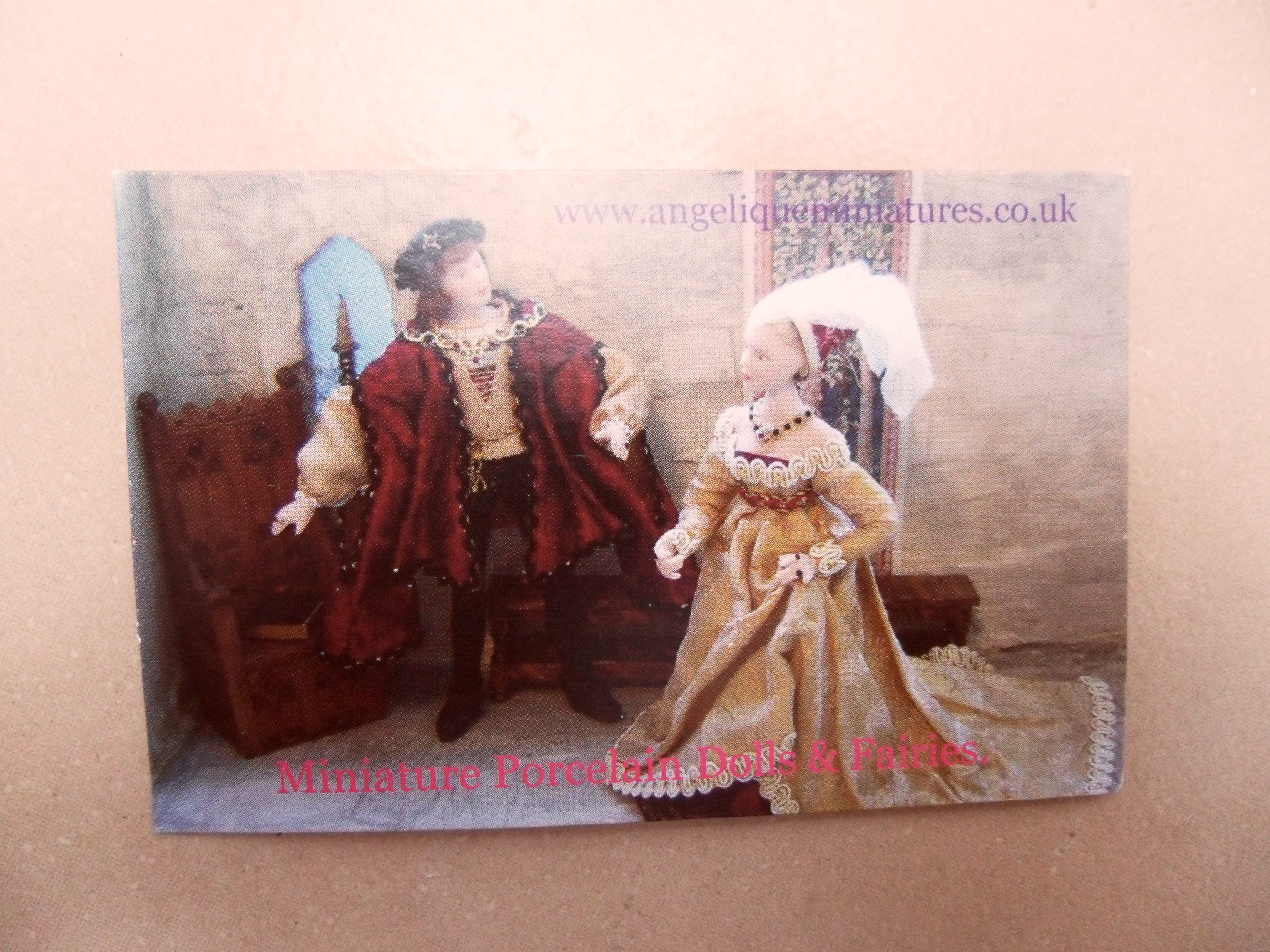 A few months ago, I listened to a very interesting talk that was given by a lady who makes porcelain miniature dolls. I was particularly interested to see that she had brought along her miniatures of Henry VII and Elizabeth of York and later discovered that the picture on the back of her business card showed her miniatures of Richard III and Anne Neville.