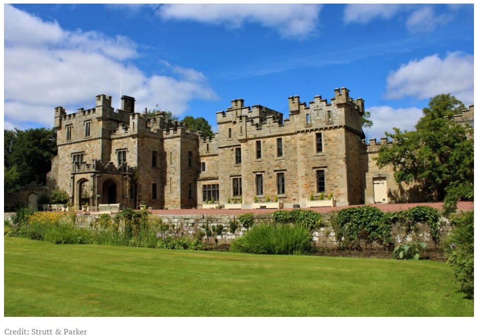 Otterburn Castle is in glorious Northumberland, see here, and dates back to the time of William the Bastard….er, Conqueror. All you need is £3 million.
