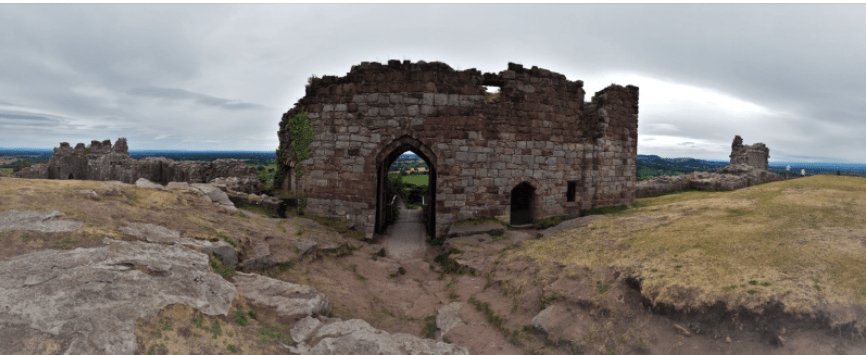Richard II appears in connection with Beeston Castle in Cheshire:- “….[It] seems to balance precariously on a rocky crag above the Cheshire Plain, and you could be forgiven for thinking it might fall right off….A balancing act surrounded by a 40-acre woodland park, Beeston Castle makes a great day out. Indiana Jones wouldn’t be out of place here—the deep castle well is rumoured to be the hiding place of Richard II’s lost treasure. If you fancy yourself a treasure hunter, don’t miss it!….”