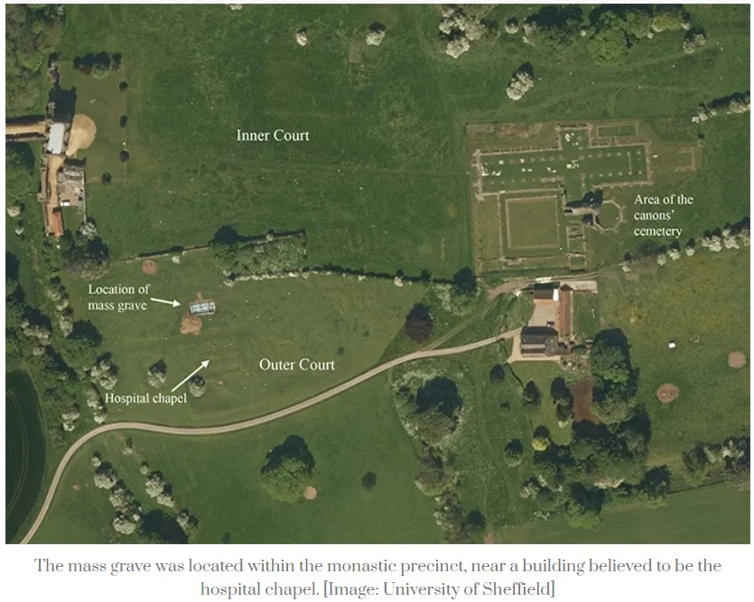 While watching Episode 5, Series 1, of the Sky History series Curse of the Ancients, I saw a report that was devoted to the mid-14th century mass grave discovered at Thornton Abbey in Lincolnshire. Mid-14th century and mass grave usually equals one thing, the Black Death, and this is no exception. What does make it an exception is that it is right out in the countryside at an isolated abbey where usually the burials would only be that of the brethren. But these remains are from men, women and children, and the programme decided that this was because the number of deaths simply overwhelmed all the usual church offices and a mass burial at the abbey itself was the only option.