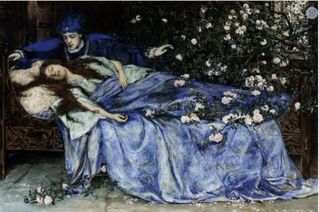 There have been previous posts on Murrey & Blue about fairy tales, nursery rhymes and so on, from their original meaning to when they first emerged. Some of them are much younger than I’d always thought, so when, in the course of my writing, I wished to allude to The Sleeping Beauty, or at least to the trope, I immediately searched for its history. My story is set in the late 14th century, and lo! The Sleeping Beauty theme goes back to the 14th century.