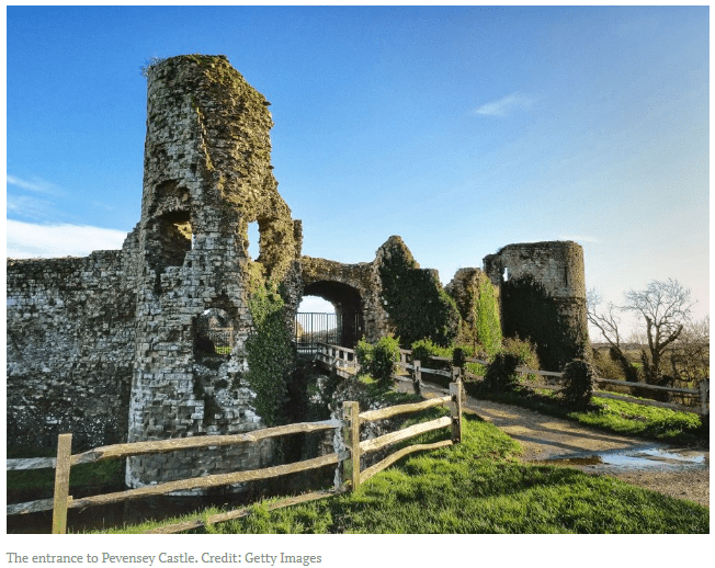 My ignorance was revealed when I read this article because I didn’t know how old Pevensey Castle was. This ancient fortress in East Sussex dates back to the Romans in the 3rd Century, and so was about 775 years old when the Conqueror marched into it. What a pity it didn’t collapse over the Bastard! Ha! Oh, but wait, that would mean no Plantagenets…. So OK, perhaps it was as well it didn’t collapse over dear William One. It ought to have had the decency to fall in on the first Henry Tudor instead…if he ever went there.