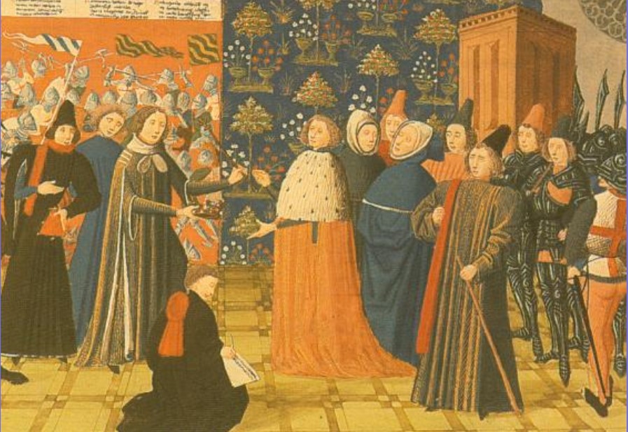 Shakespeare, of course, did ,the same, as shown below in this scene from the first episode of 2012 The Hollow Crown series, which episode concerned the reign of Richard II..