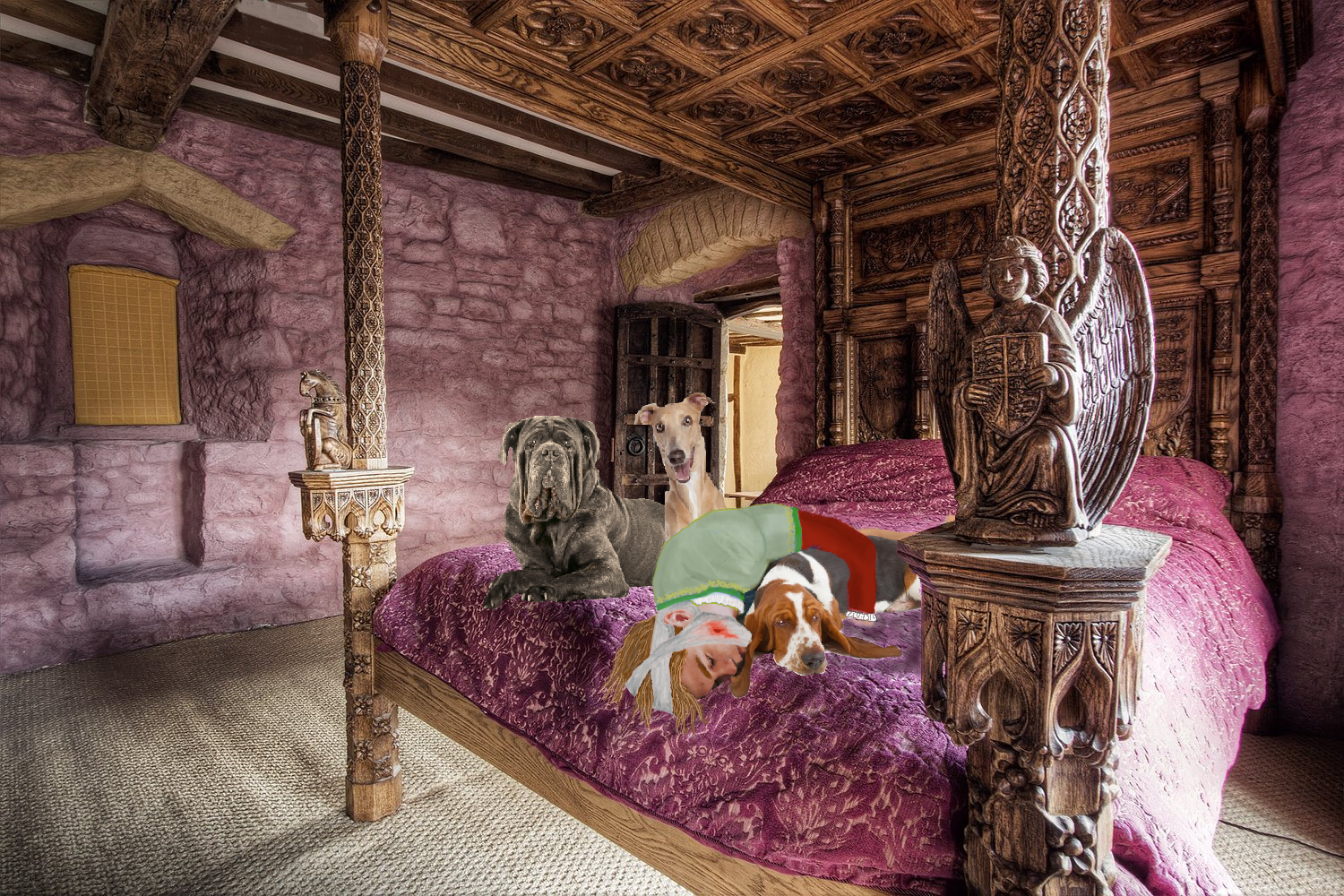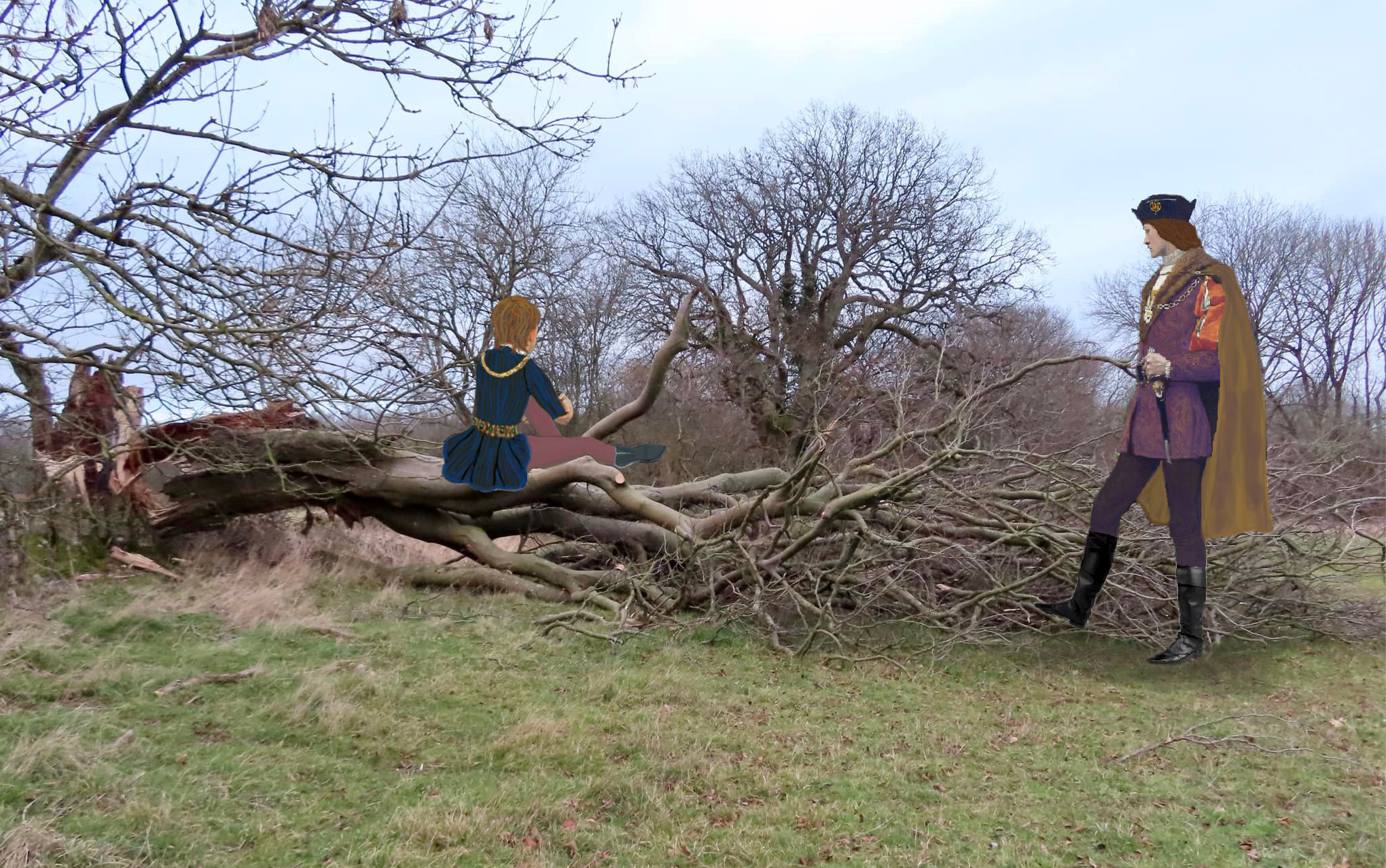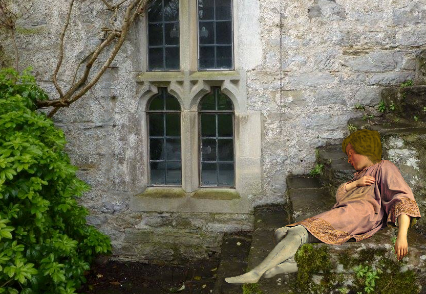 Figure 3: The setting is Dartington Hall, Devon. The figure of Dickon is adapted from the painting The Murder of the Sons of Edward IV (1835) by Theodor Hildebrandt (1804-1874)
